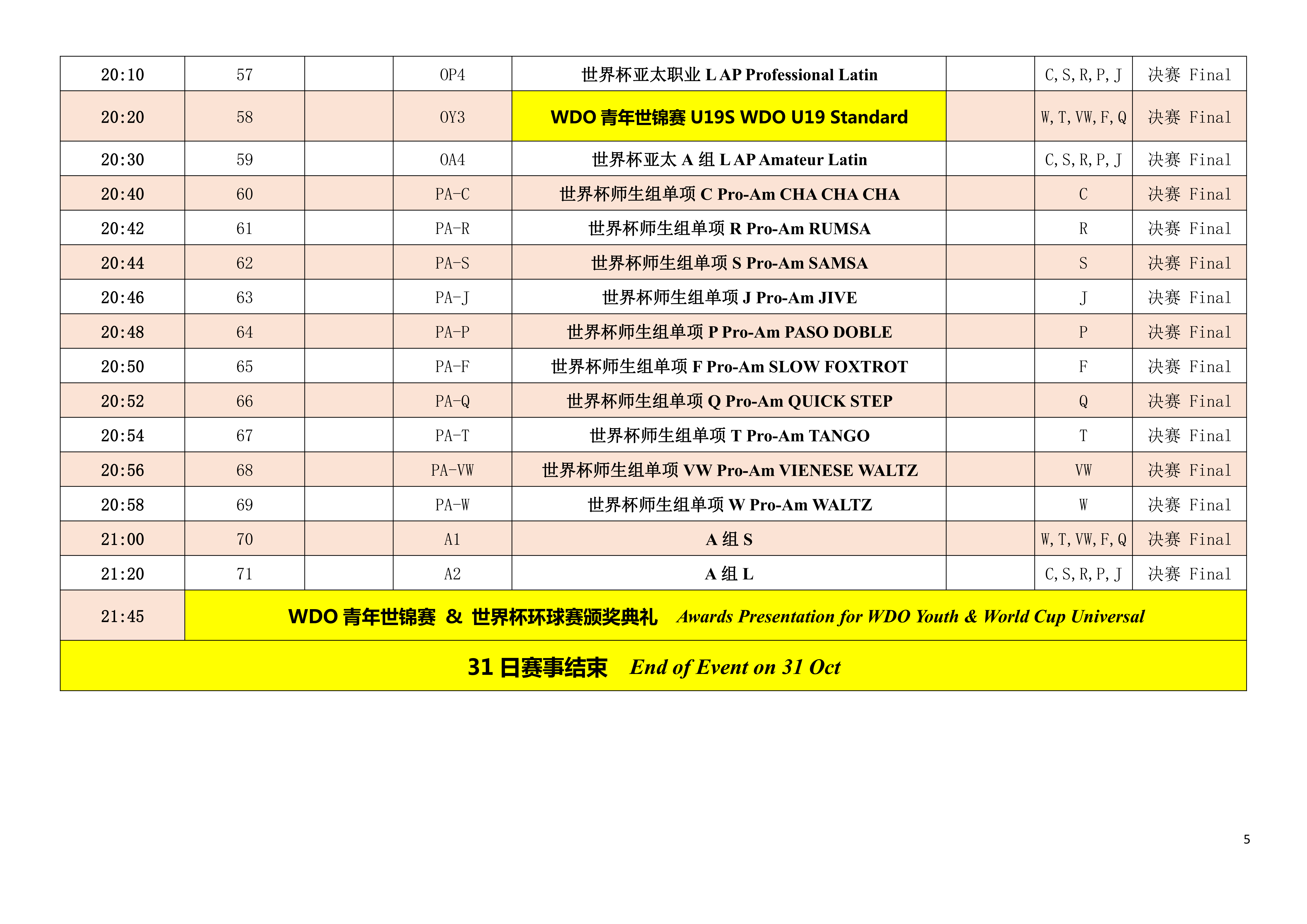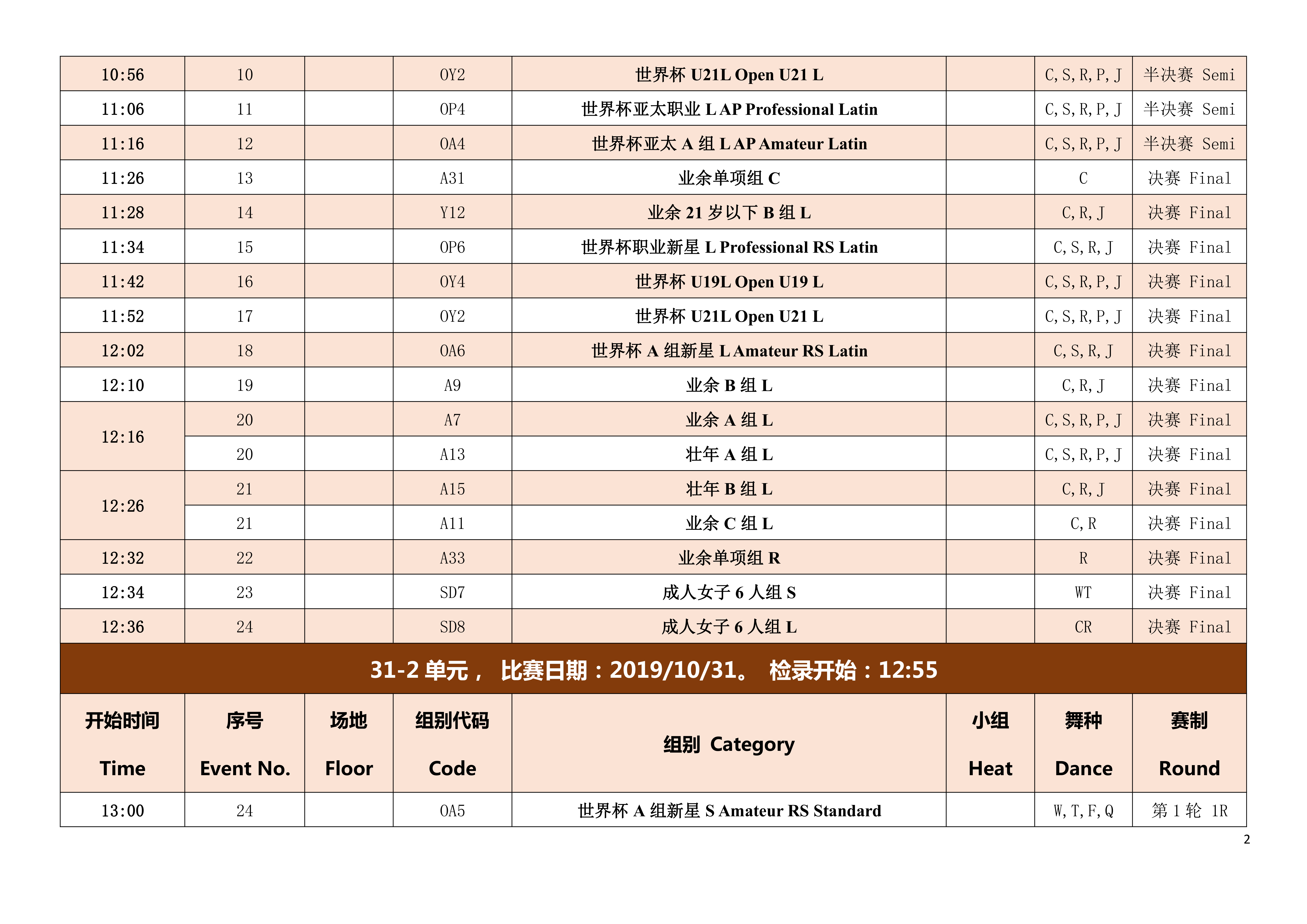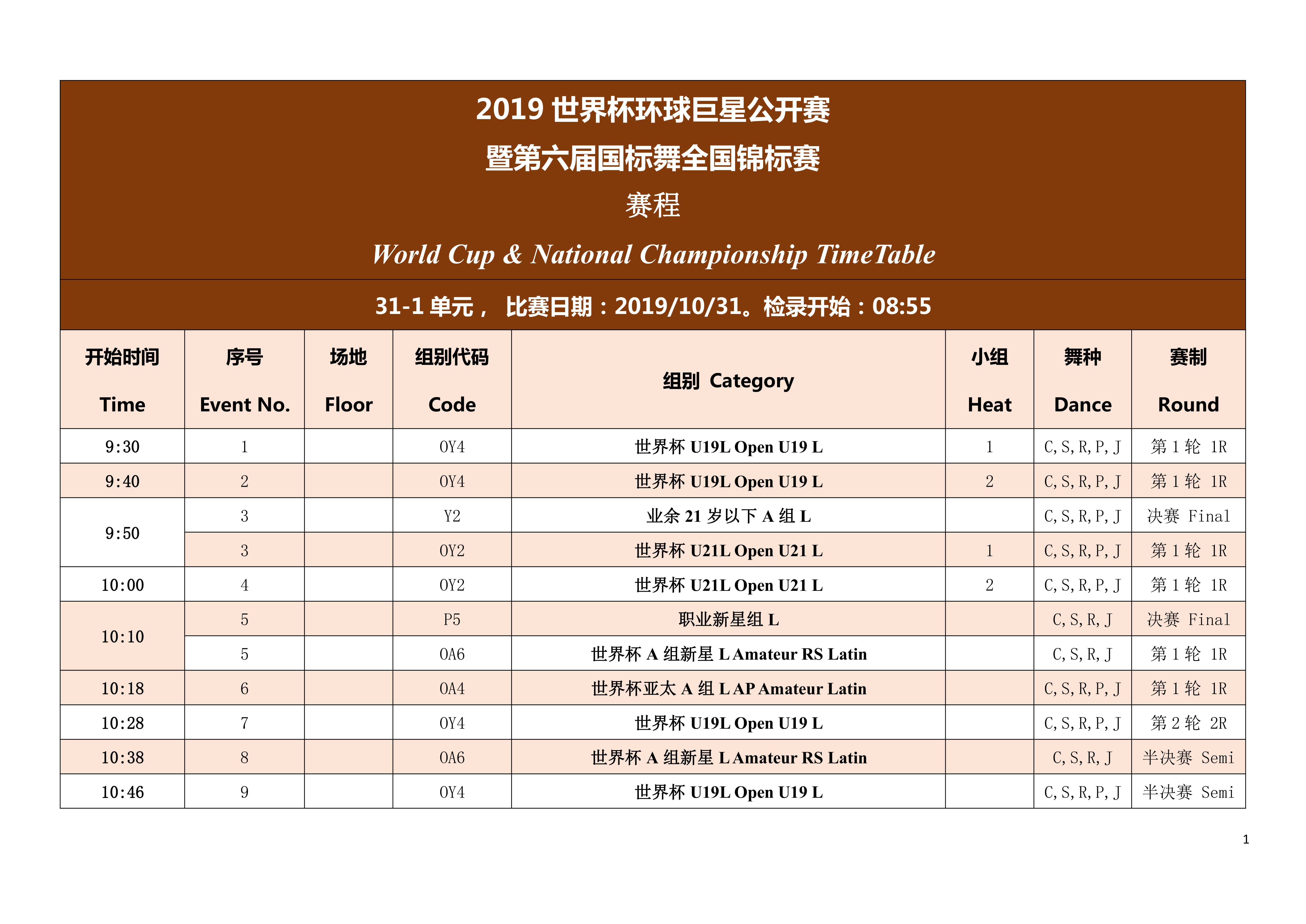 10月31日赛程 丨 2019世界杯环球公开赛暨全国锦标赛