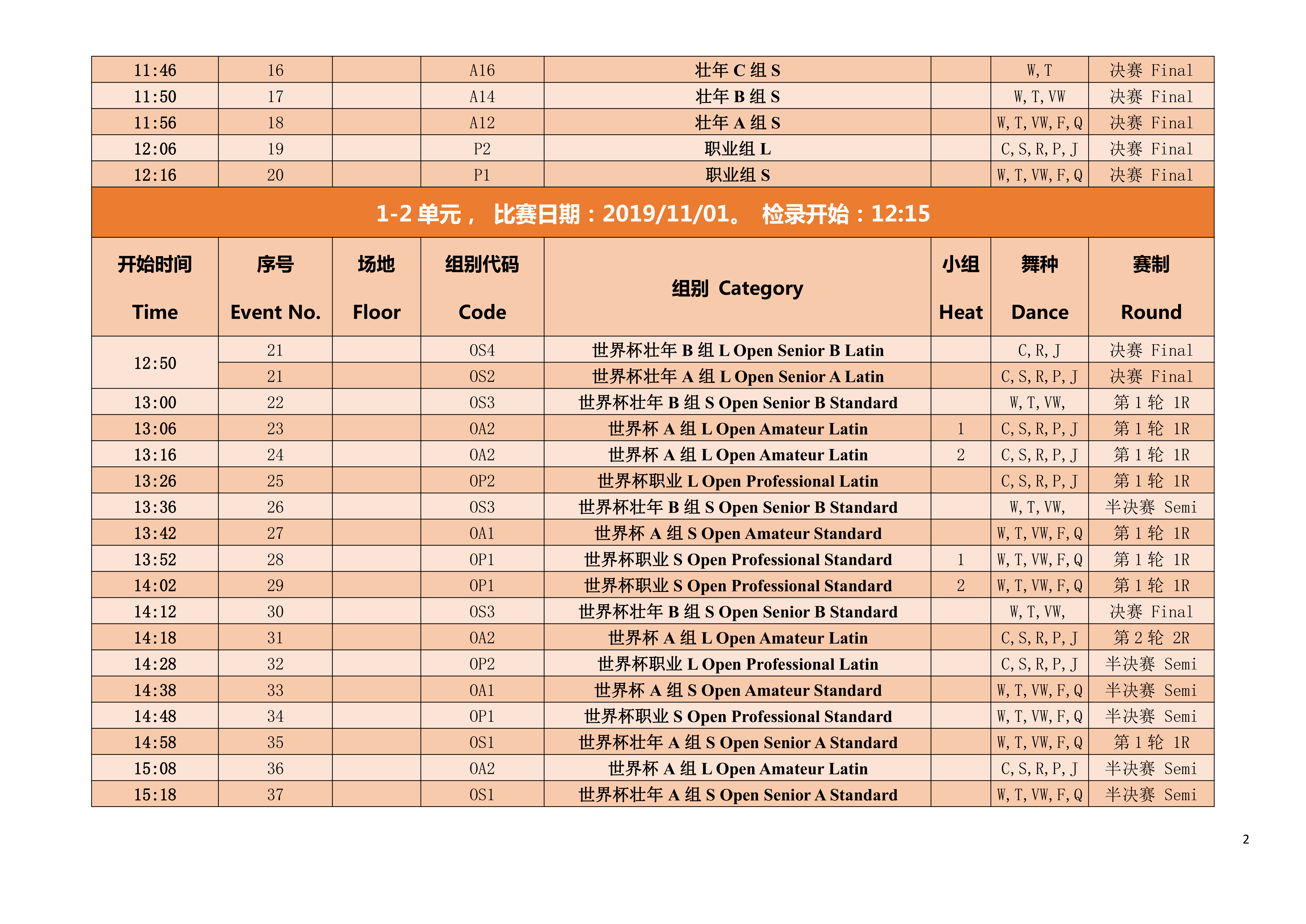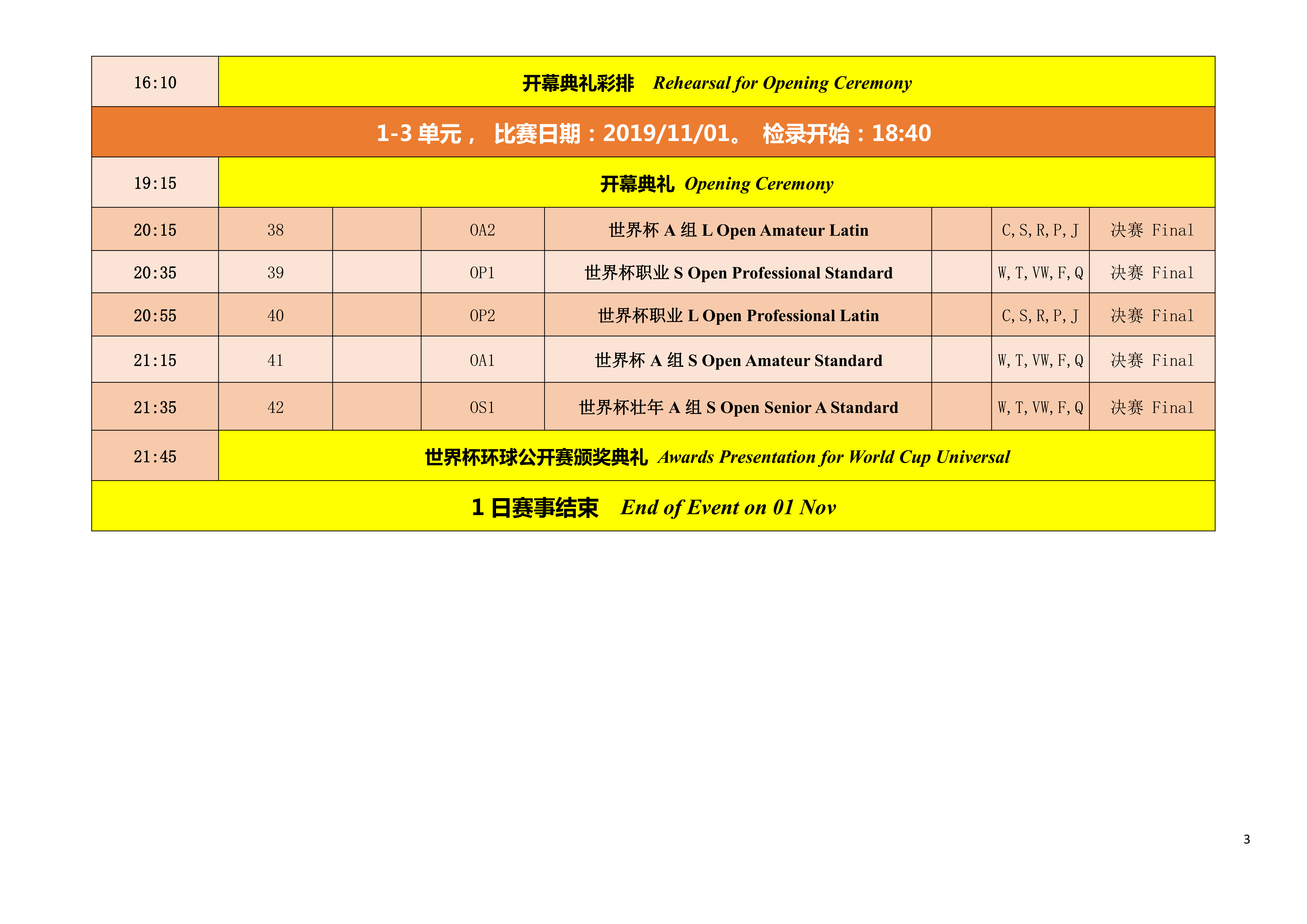 11月1日赛程 丨 2019世界杯环球公开赛暨全国锦标