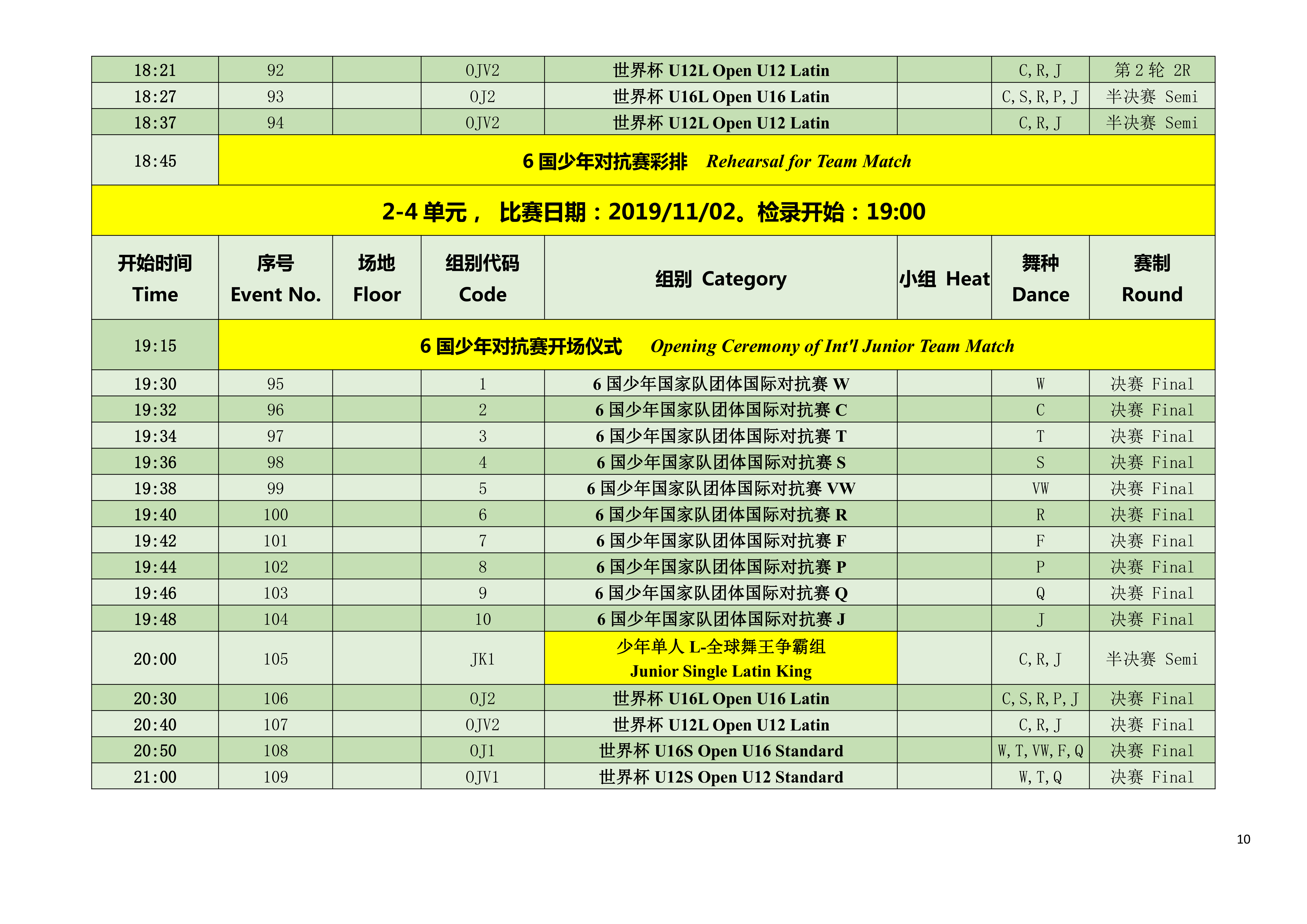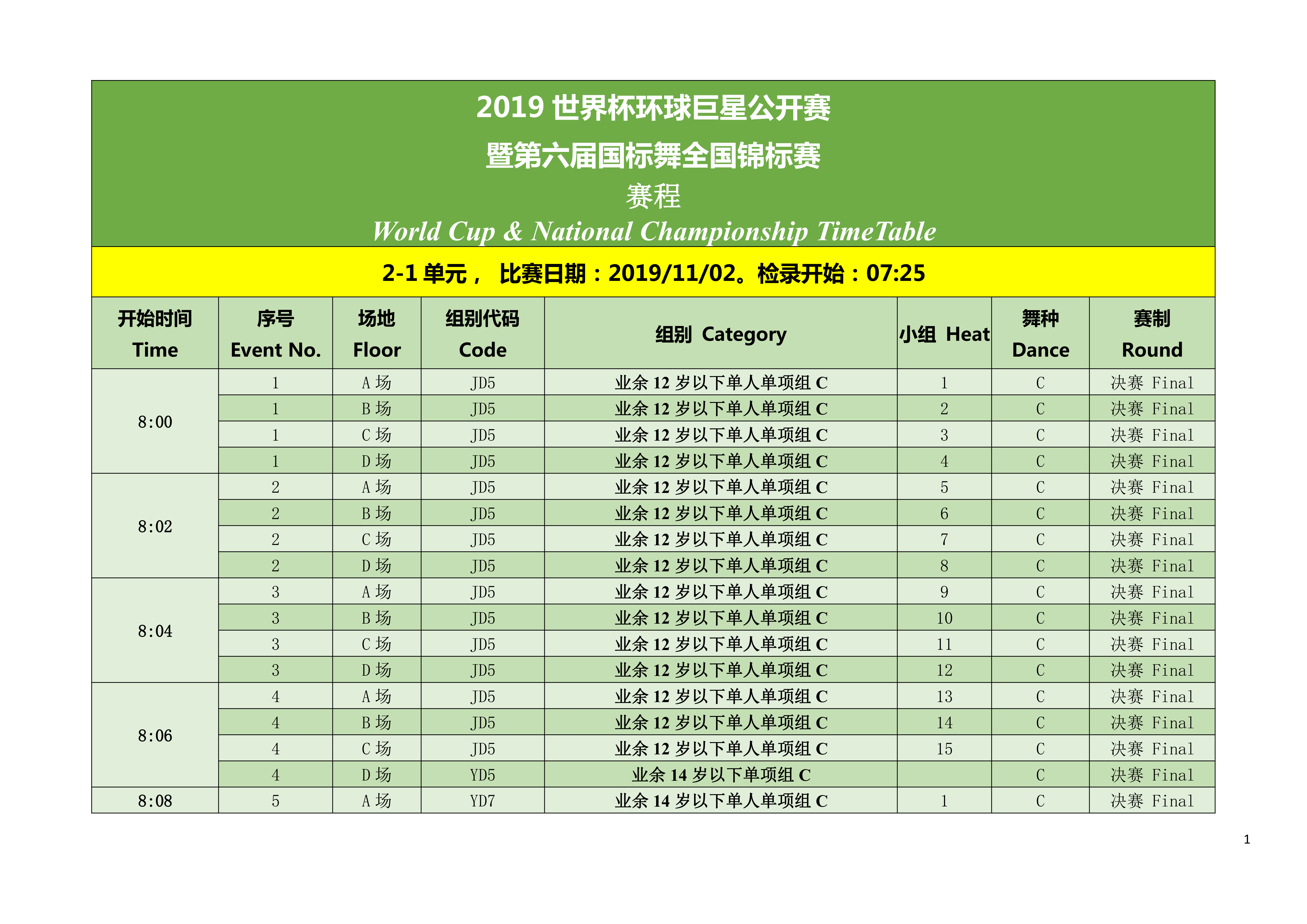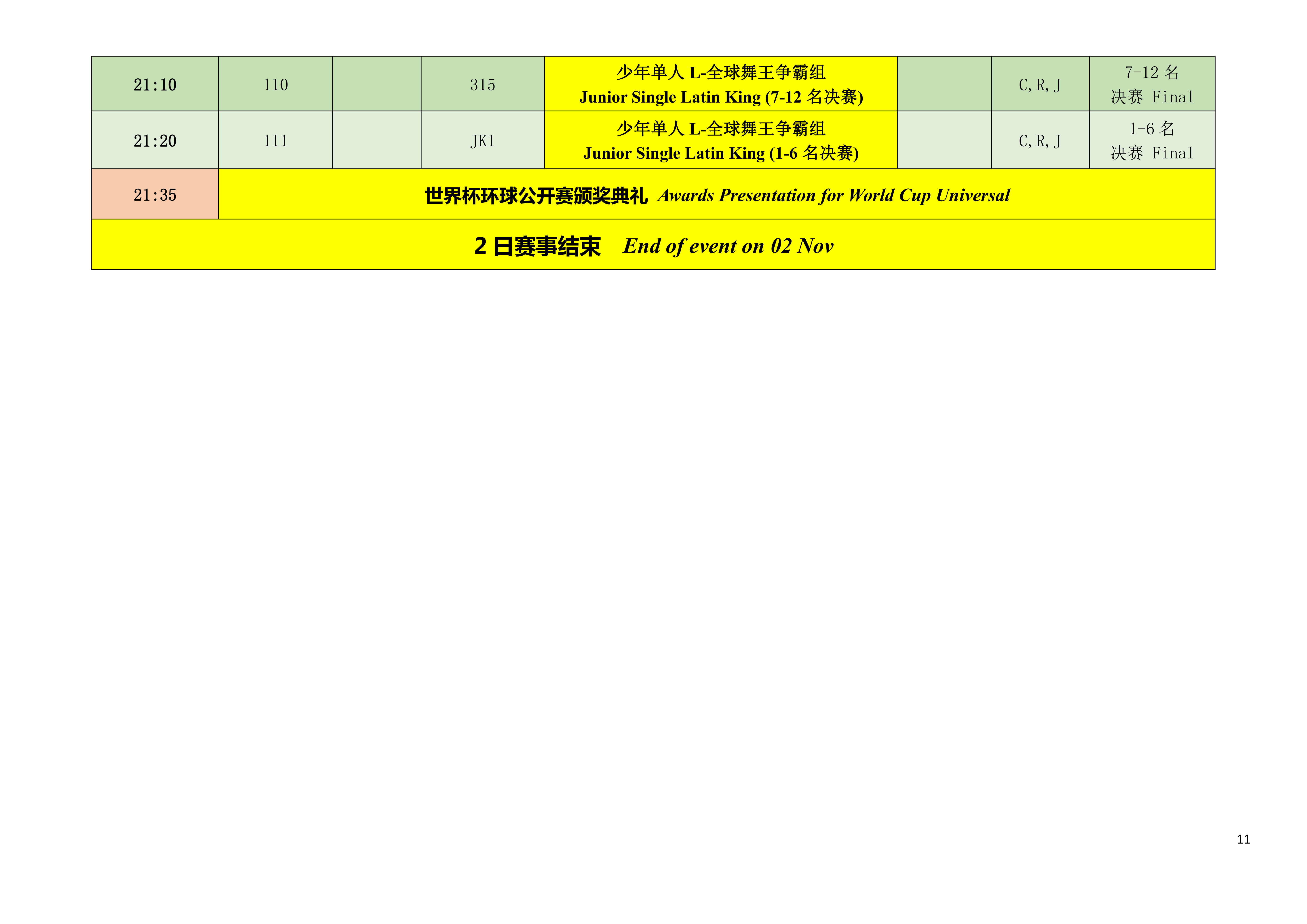 11月2日赛程 丨 2019世界杯环球公开赛暨全国锦标赛