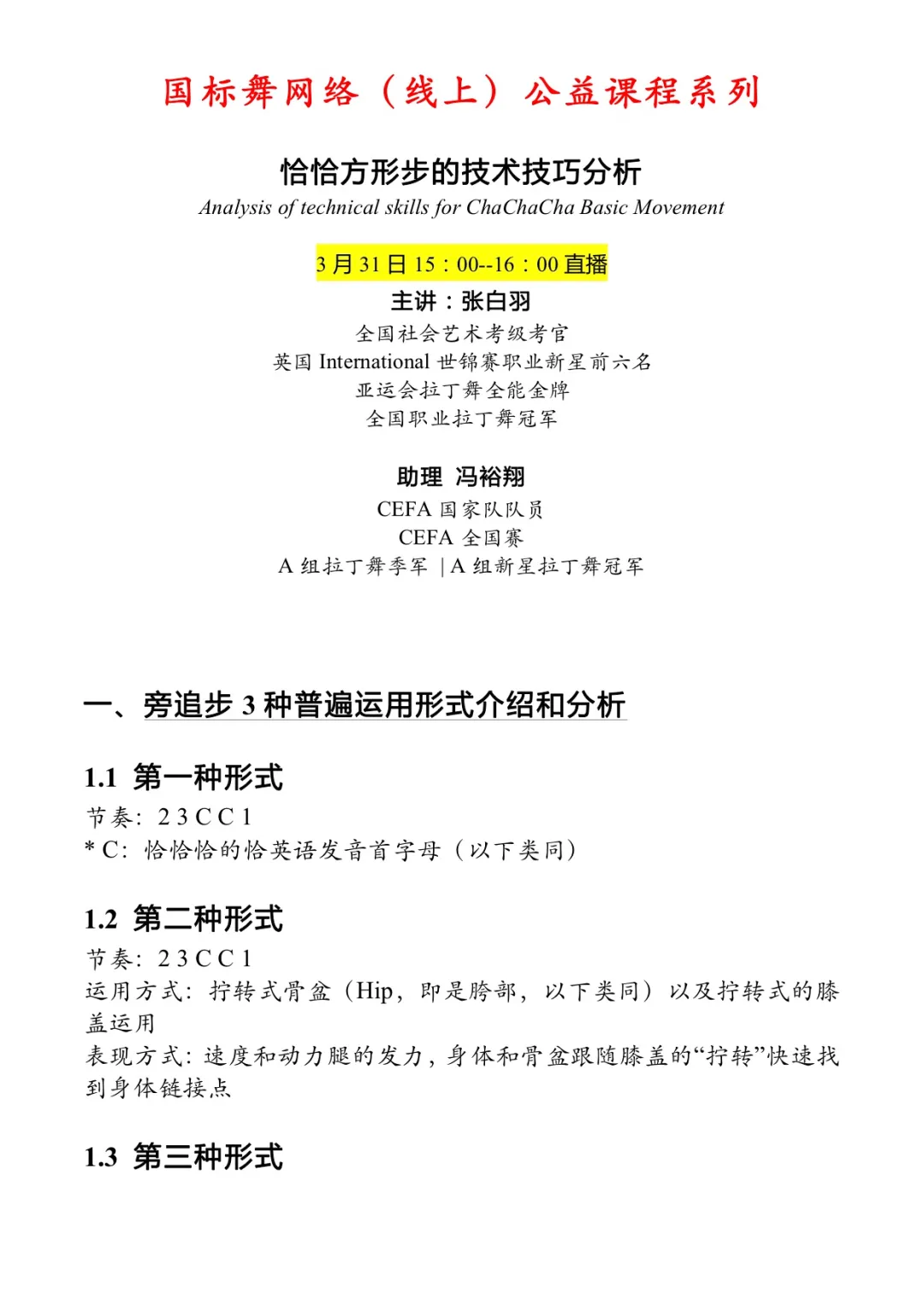春雨3月的最后一天,留给人间最美的4月一个美好开始。。。31日的今天,进入“国标舞网络(线上)公益课程” 的大咖让大家着实地嗨得一阵阵,享誉海内外的拉丁舞全能冠军张白羽在万众瞩目下粉墨登场,直播间顷刻之间沸腾。